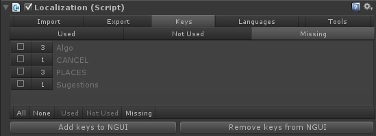 After selecting the checkbox of each of those missing keys, they can be added to the localization files by clicking the Add Keys to Source button.