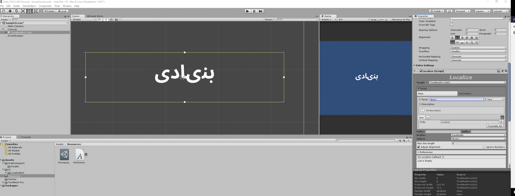 2- If The text was placed directly in the TextMeshPro component without applying the arabic fix.
