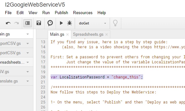 - Make sure you already have at least one localization Spreadsheet in your Google Drive