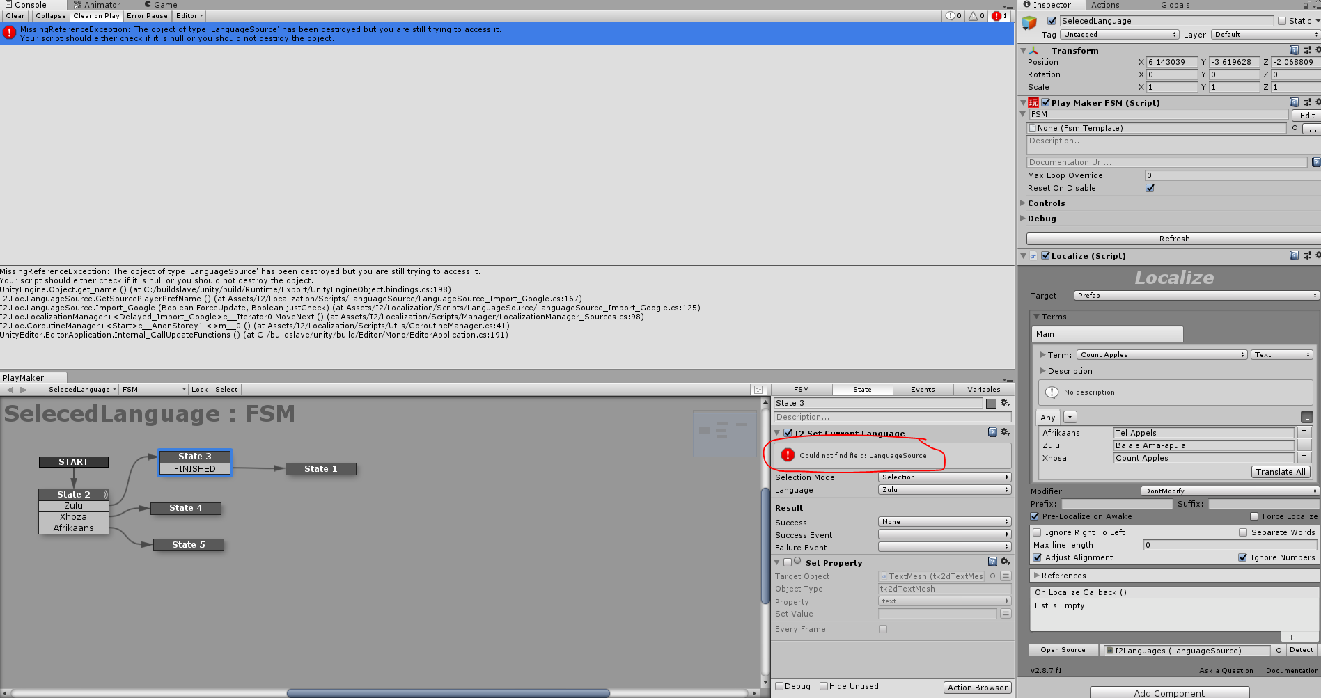 Error on the I2 Set Current Language on Unity 2018.2 Playmaker version 1.9.0.p4