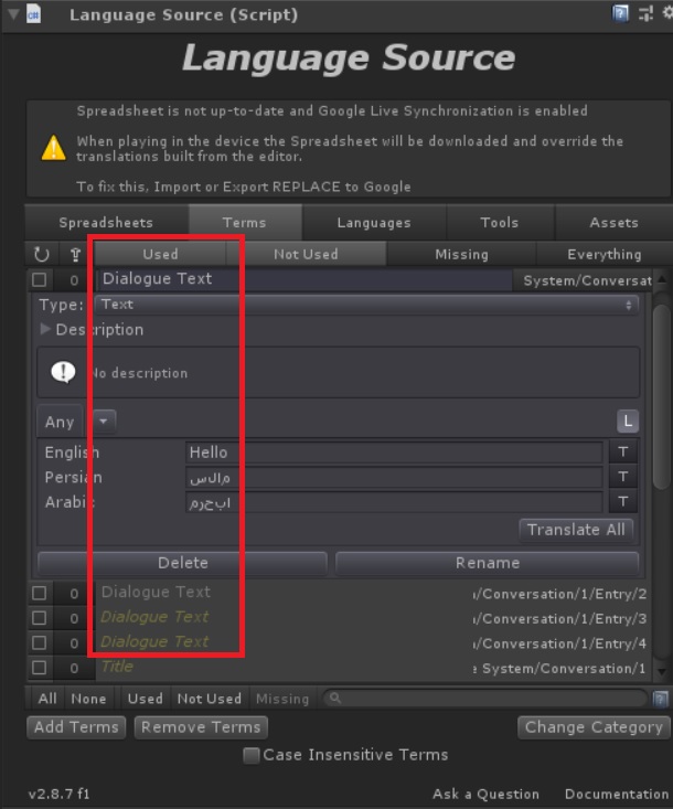 It doesn't work that way. Maybe the problem is that Dialogue System export everything with the term: "Dialogue Text"