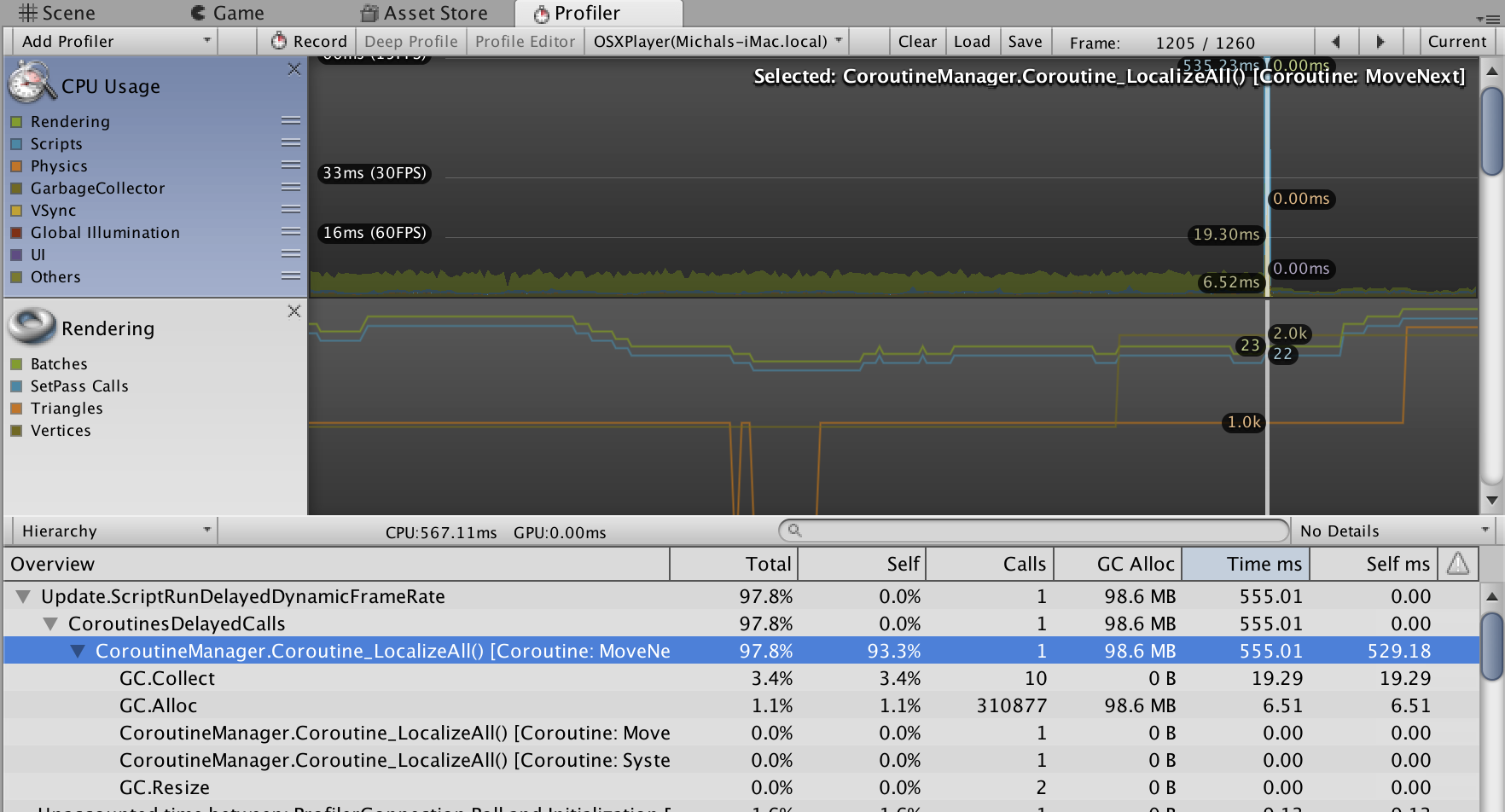 Thanks. I am not able to deep profile build, and in the editor, it behaves differently, probably the update is made during the scene load as scene loading is slower in the editor. Anyway, 99% of my localize components are on prefabs in resource folder - NONE of them is loaded in the scene — all of them using Text Mesh Pro (the old one, before Unity bought it). Just very few elements using UI Text and they are in a different scene.