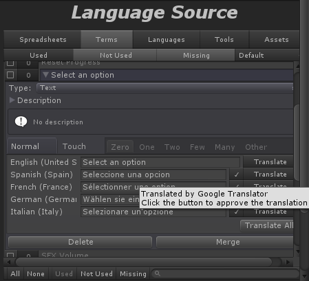 Terms translated using Google Translator are now mark to let you know that a human translator should approve that translation.