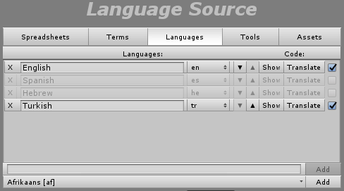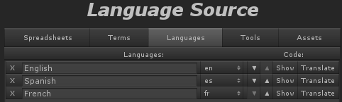 NEW: Languages can now be disabled (useful for having data columns in the spreadsheet) Just add a $ in front of the language name in the Spreadsheet or uncheck the toggle in the LanguageSource