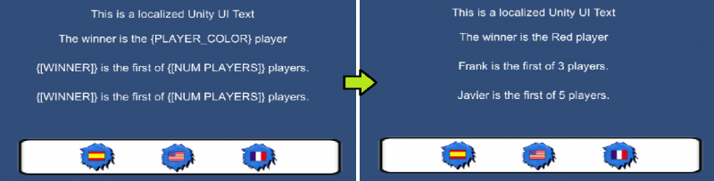 NEW: Local parameters can be set by adding a LocalizationParamsManager component to the gameObject, and it has a list of parameters (i.e. <Name, Value> pairs)