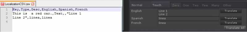 This does not works when updating the Language from CSV instead of Google Drive. The CSV gets corrupted when exported from Google Docs to CSV.