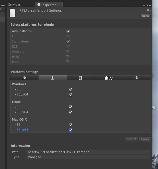 To fix the issue, select dll at Assets\I2\Localization\Dlls\RTLParser.dll