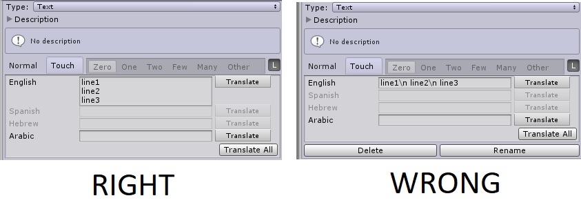 we have lots of text in our game and lots of formatting using \n and \n\n. In the localised text this formatting doesn't work.