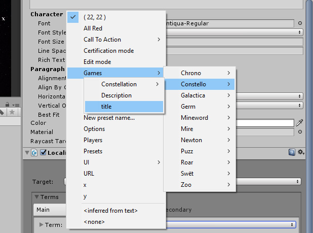 - As you can see, In the filter view "Image #1" I can not access to "Games/Constello/Title" but I can with the i2 Lozalize "Image #2"