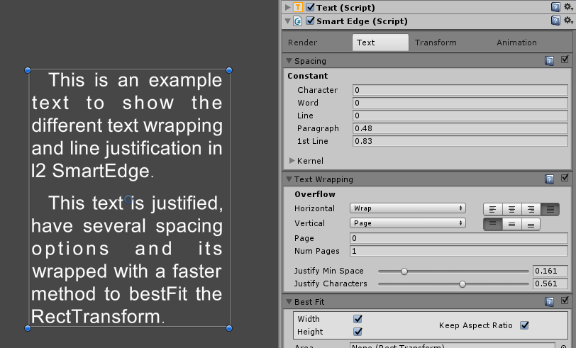 NEW: Added a new main tab ("Text") that contains all settings related to Text (Spacing, Wrapping, RichText, etc)