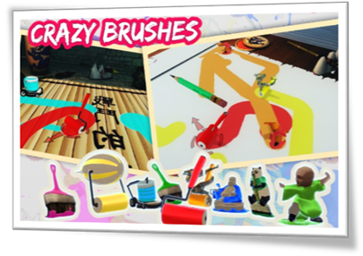 Full of Power Ups to improve the speed, double the size, spawning a bomb mayhem or just hitting the opponents to slow them down. Brush Master will take the battle thru crazy levels that will go from the comfort of your bedroom notebook to exotic temples in China.