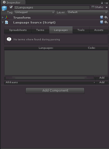 Select the global Language Source at Assets \ Resources \ I2Languages.asset